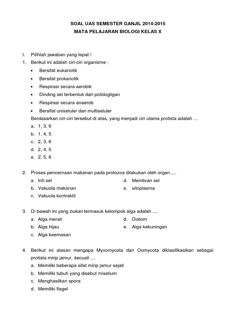 Kumpulansoalulangan dot com download dan dapatkan contoh soal uas biologi sma kelas 10 semester 1 ganjil berdasarkan kurikulum ktsp bukan k 13 terbaru dengan jumlah soal 20 butir dengan rincian 10 pilihan ganda dan 10 soal isian atau essay silahkan sobat yang ingin berlatih copas soal uas ganjil biologi ini. Pilihlah jawaban abcd atau e yang memuat peryataan jawaban yang tepat dari soal soal pilihan ganda.